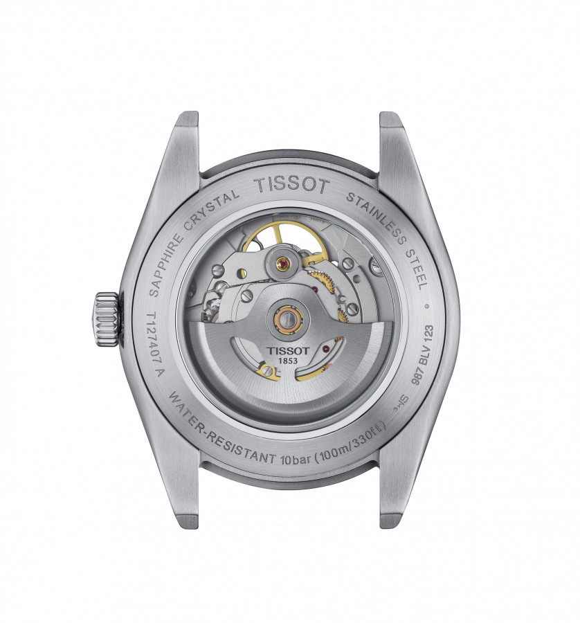 Kleur wijzerplaat : een blauwe wijzerplaat waarlangs je in het binnenwerk kan kijken.