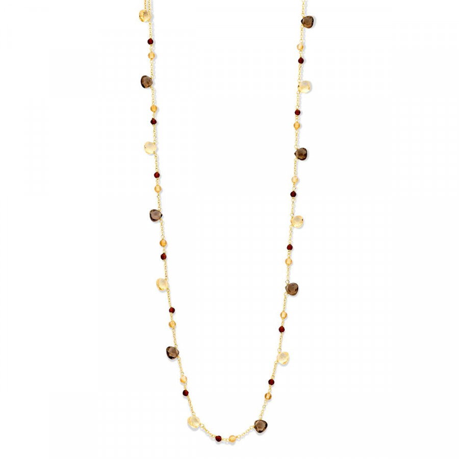 18 karaat geel gouden ketting met halfedelstenen citrien, rhodolit