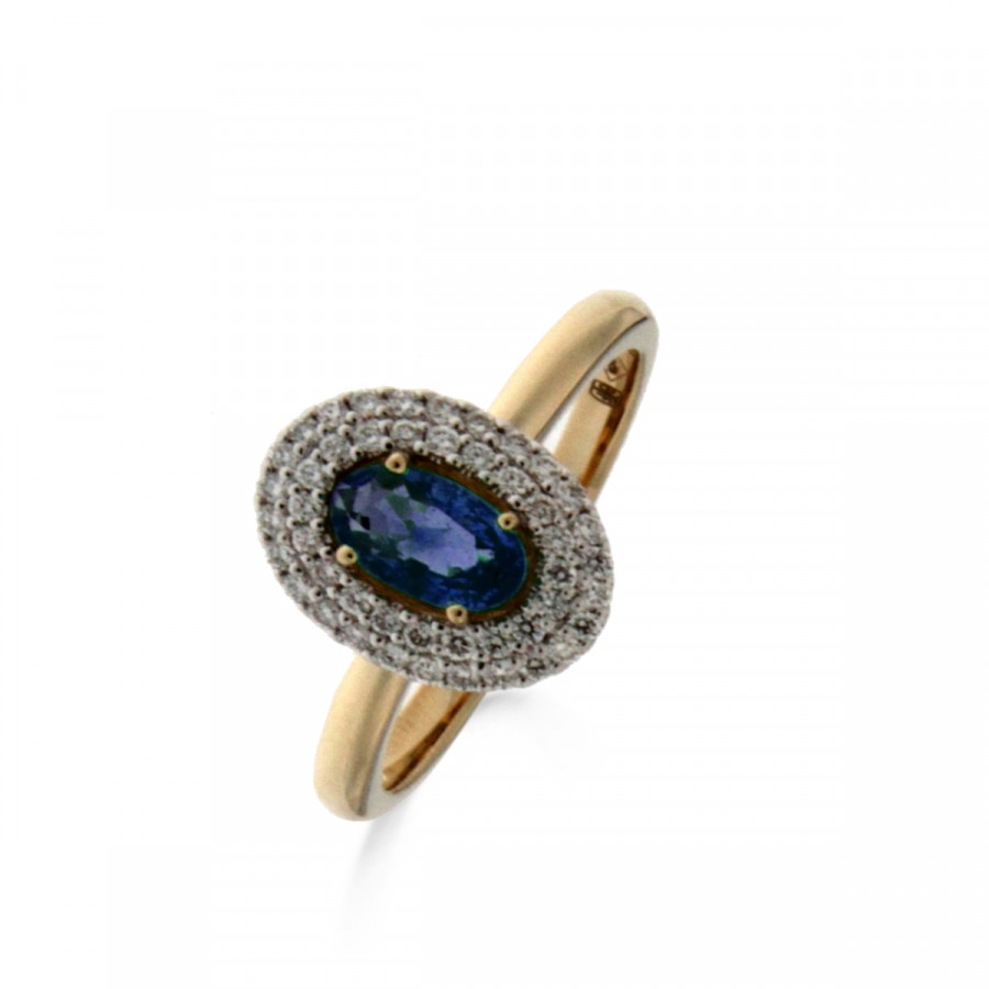 18 karaat bicolor gouden ring  gezet met diamant 0.2ct en blauwe saffier 0.59ct.