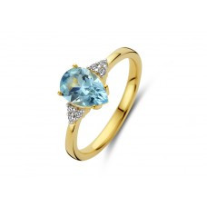 18 karaat geel gouden ring met briljant ( 0.05ct) en topaas