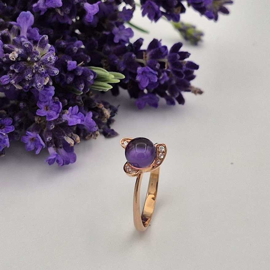 18 karaat rozé gouden ring met ametist en briljant 0,08ct