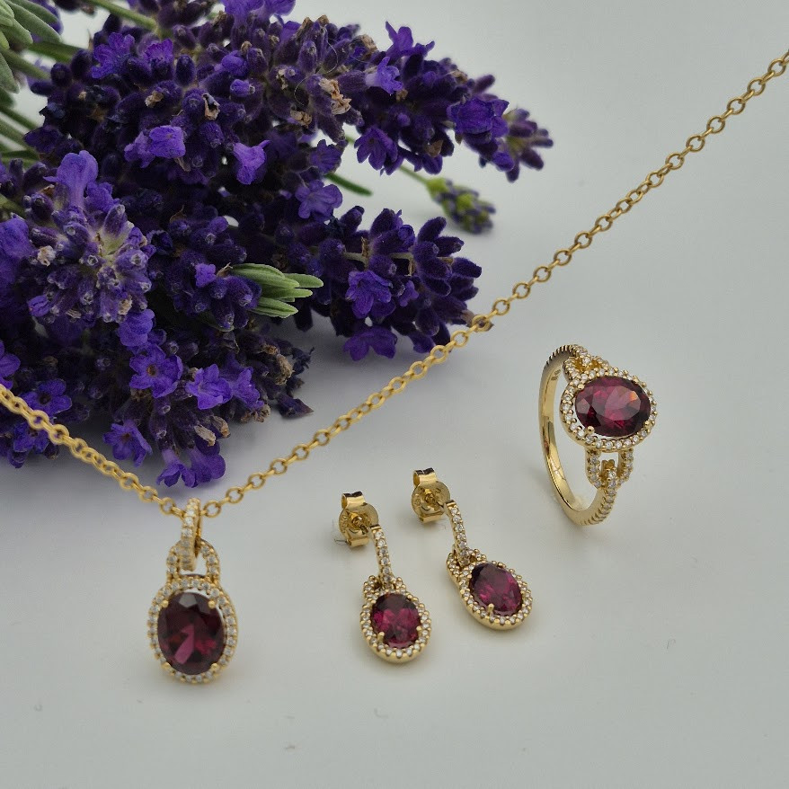 18 kr geel gouden hanger met rhodolite en briljant 0,16ct