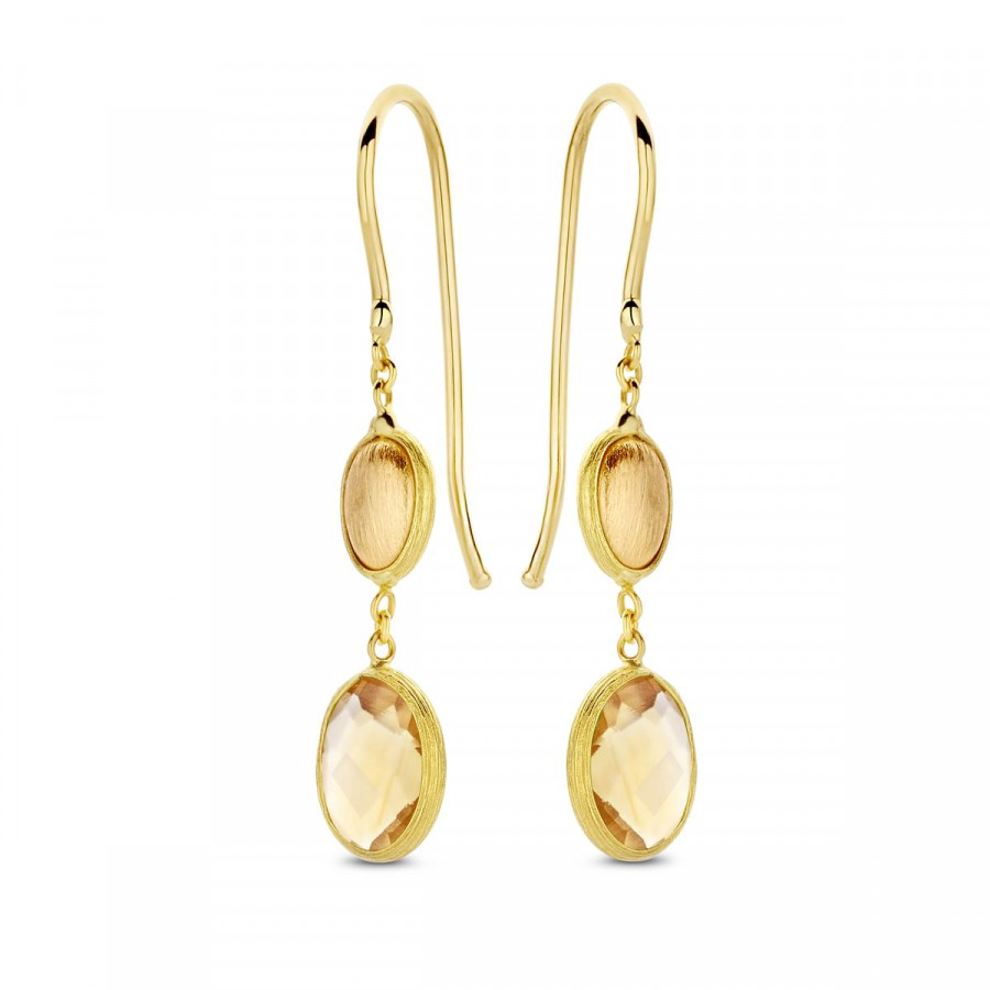 Geel gouden oorslingers in 18 karaat met een mat element en citrien