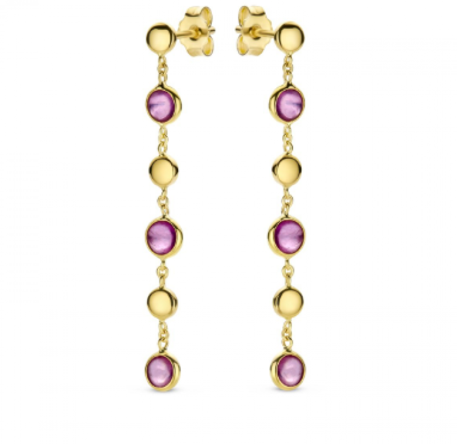 Slingeroorringen in 18 karaat geel goud met robijn en citrien