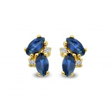 Geel gouden oorringen in 18 karaat met blauwe saffier en diamant.