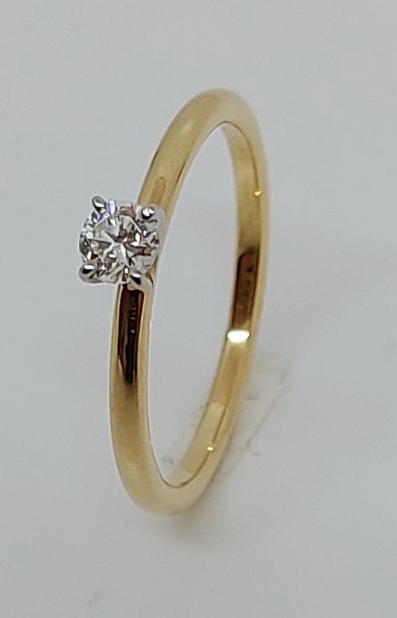 18 karaat bicolor gouden solitair met 1 briljant 0.15crt
