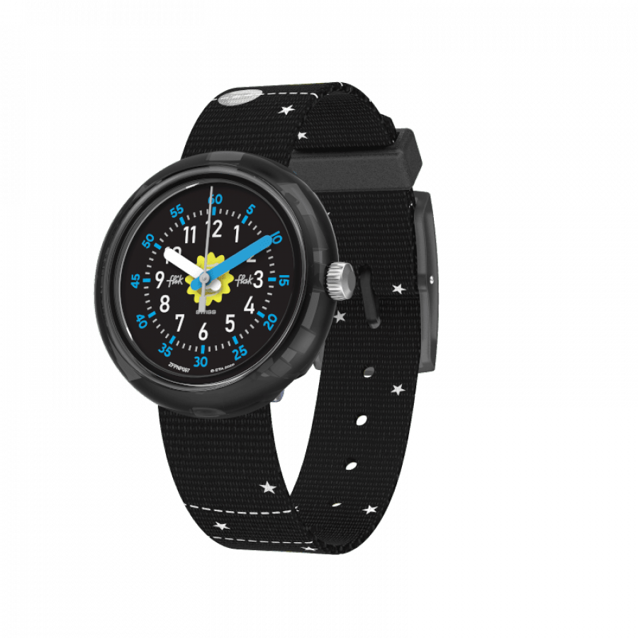 Leren klokkijken met het educatieve SOLAR SYSTEM horloge voor kinderen. Een cadeau voor kleine astronomen met planeten en een wijzerplaat vol sterren.