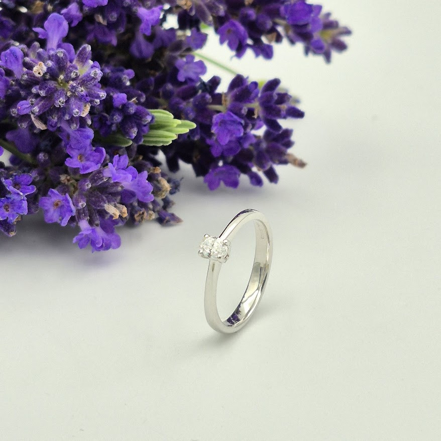 18 karaat wit gouden ring type solitair met ovale diamant 0,21ct